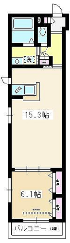 1LDK。 最上階角部屋