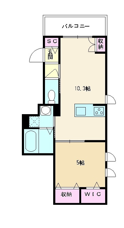 | 間取り | 1LDK | 間取り詳細 | 洋室5帖・LDK10.3帖 | 専有面積 | 39.34㎡ |