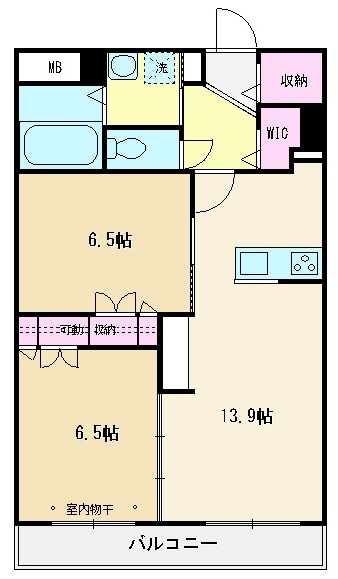 | 間取り | 2LDK | 間取り詳細 | 洋室6.5帖・洋室6.5帖・LDK13.9帖 | 専有面積 | 61.12㎡ |