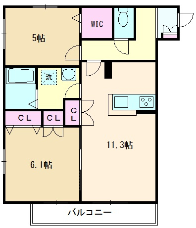 | 間取り | 2LDK | 間取り詳細 | 洋室6.1帖・洋室5帖・LDK11.3帖 | 専有面積 | 56.47㎡ |